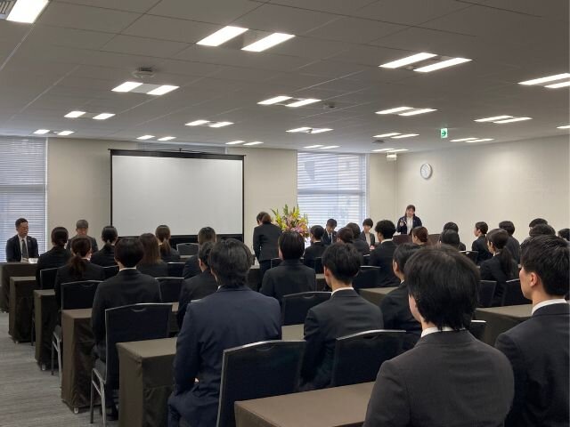 今年度は首都圏・近畿圏それぞれ約50名、計100名以上と、歴代最高人数の新入社員を迎えることもあり、入社式は首都圏と近畿圏の二会場に分かれての開催となりました。