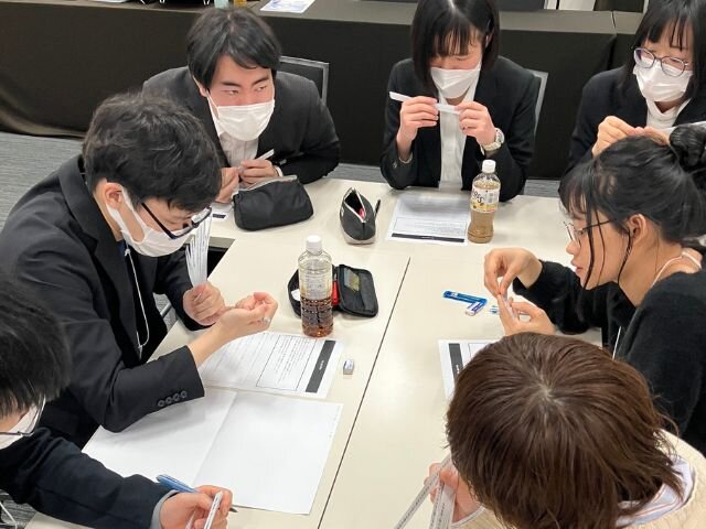 真面目に取り組む姿に「今年の新入社員の皆さんは優秀だね」と人材開発課のメンバーからも賞賛の声が上がっていました。同期が多くなればなるほど、あまり話す機会がない人も出てきますよね。研修でチームを組む際にも、全員ができるだけたくさんの人とコミュニケーションを取れるように配慮をしていますが、課題が会話のきっかけになり、さらに交流が深まればいいなと思います。